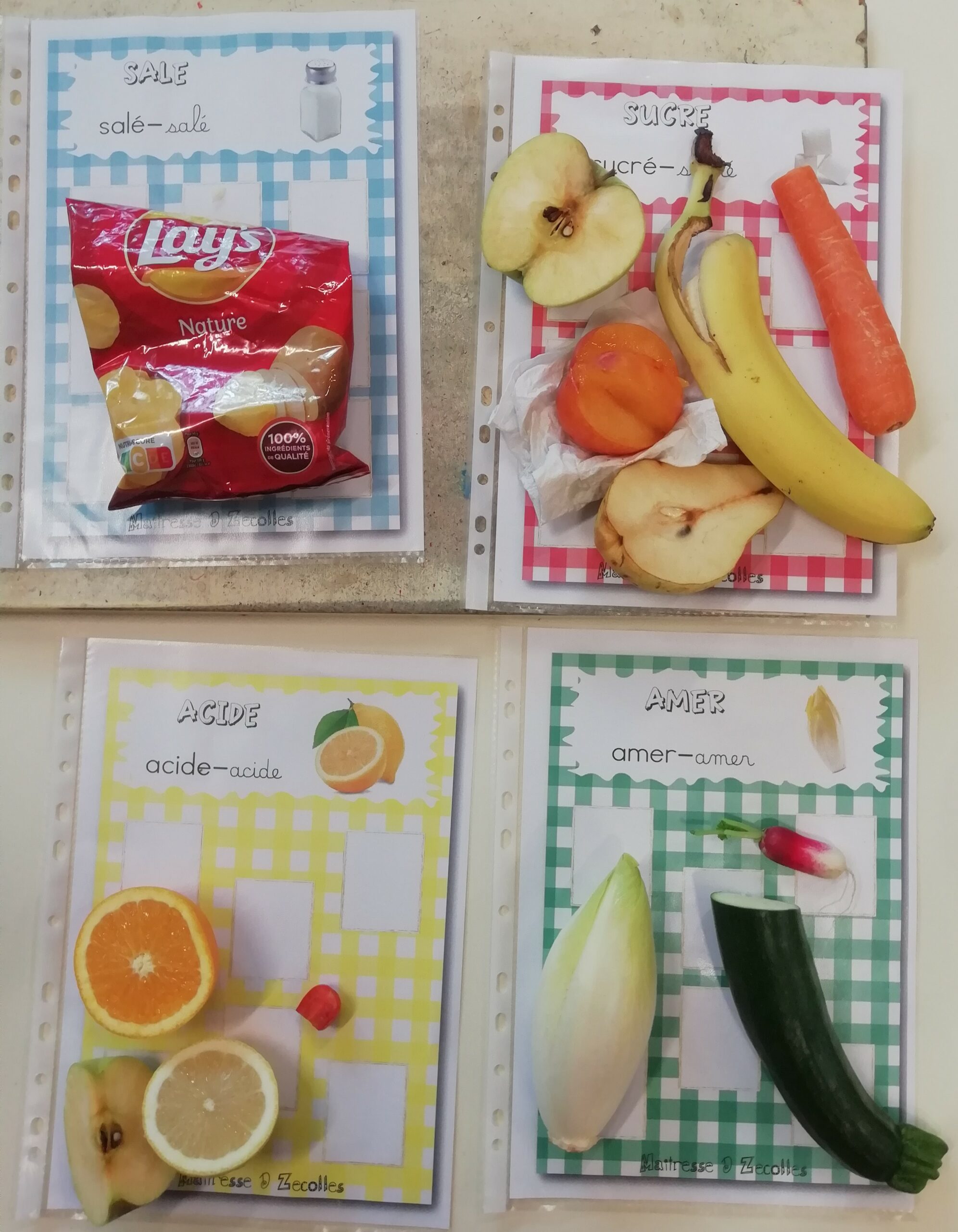 Jeu du kim goût pour différencier le sucré, le salé, l’acide et l’amer