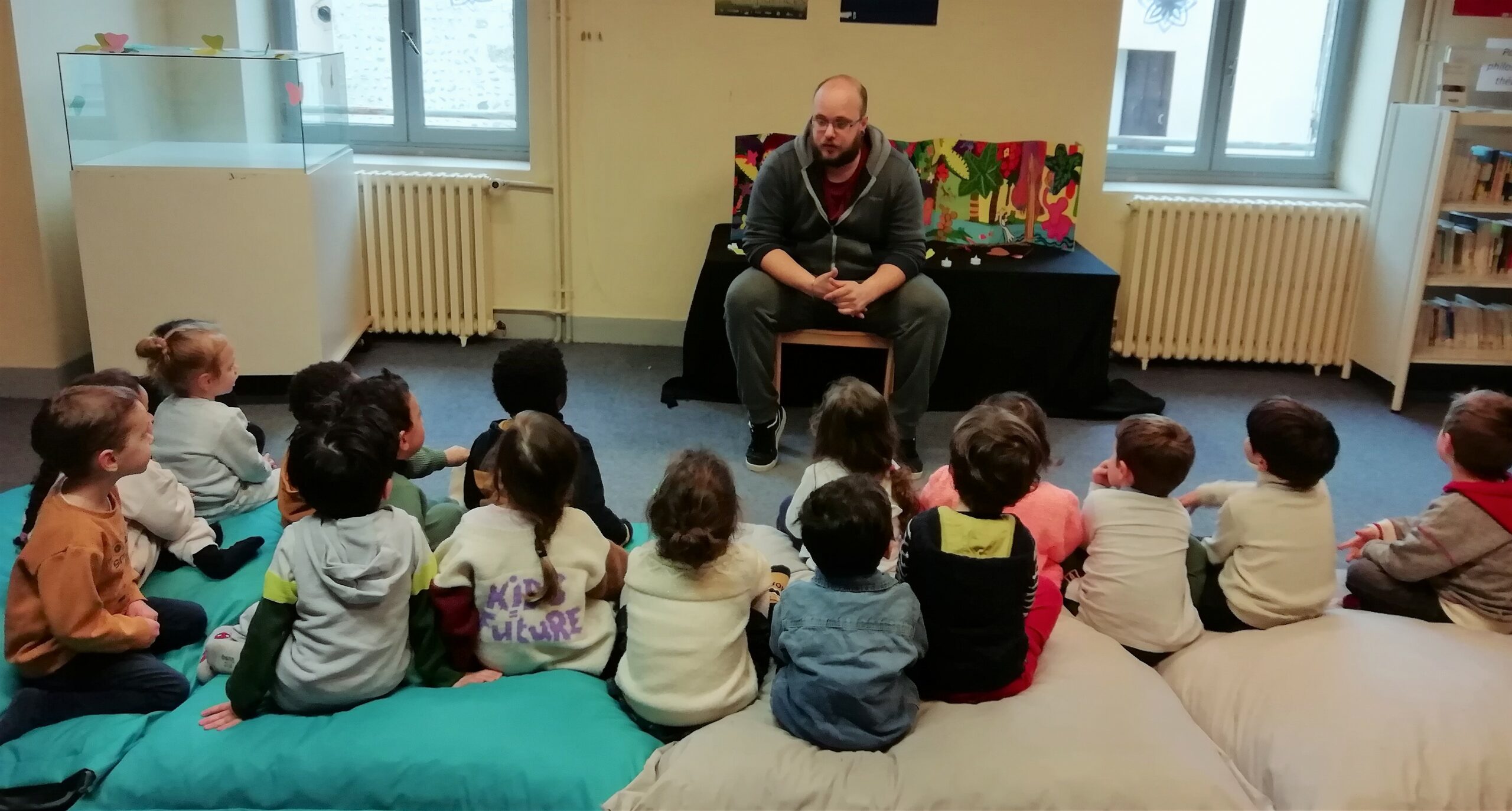 Et la deuxième fois, nous avons d’abord fait de la lecture plaisir avant que Solène nous lise l’histoire de l’hippopotame amoureux sous forme de kamishibaï.